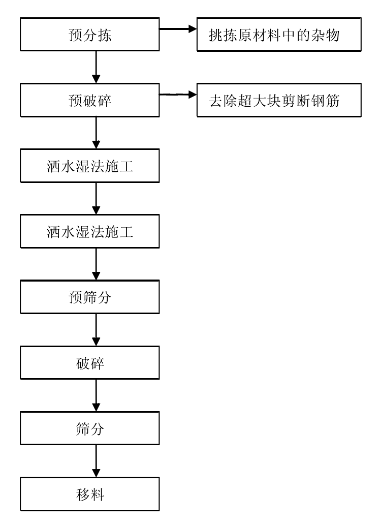 應用于公路路基工程的建筑垃圾主要是指拆除物中的混凝土塊、磚塊、砂漿塊、陶瓷、玻璃以及由這些成分所產生的細料。由于建筑垃圾中所含成分非常復雜,含有大量不利于公路工程質量的雜物如木塊、塑料制品、棉布、泡沫等有機輕質材料,并不是能全部應用與公路工程,而且建筑垃圾的顆粒組成極不均勻,有大量超大粒徑顆粒存在,不利于公路路基的壓實。所以在建筑垃圾利用到公路工程之前需要對其進行加工。