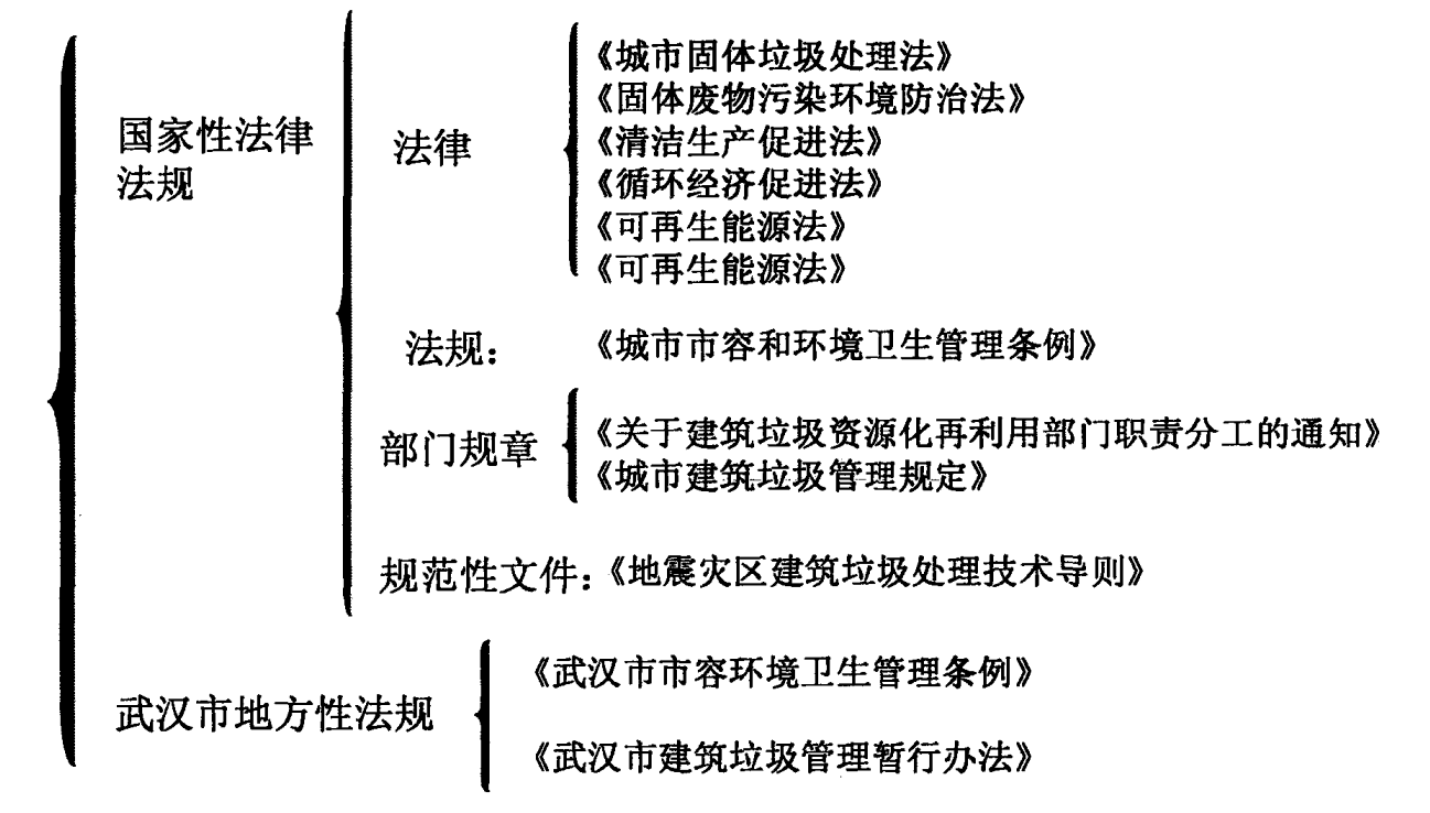 針對建筑垃圾管理的具體情況,武漢市政府出臺的《武漢市建筑垃圾管理暫行辦法》對各個部門的職能做了具體分工。該辦法第五條規定:“市、區人民政府建立建筑垃圾處置監管協調機制……市、區城市綜合管理委員會辦公室是本級建筑垃圾處置工作的監管協調機構,具體負責組織、協調、考核建筑垃圾處置管理工作。”第六條規定:“市城市管理行政部門是本市建筑垃圾管理的主管部門,負責組織實施本辦法。各區城市管理行政部門負責本行政區域內建筑垃圾處置的日常監管工作。建設行政部門負責施工現場的文明施工管理,監督落實沖洗保潔措施,查處違反文明施工管理的違法行為。公安交通管理部門負責建筑垃圾運輸車輛道路通行管理,監督落實通行時間、路線,查處相關道路交通安全違法行為。發展改革、國土規劃、交通運輸、環保、物價、財政、監察等行政部門按照各自職責,負責建筑垃圾管理的相關工作。”