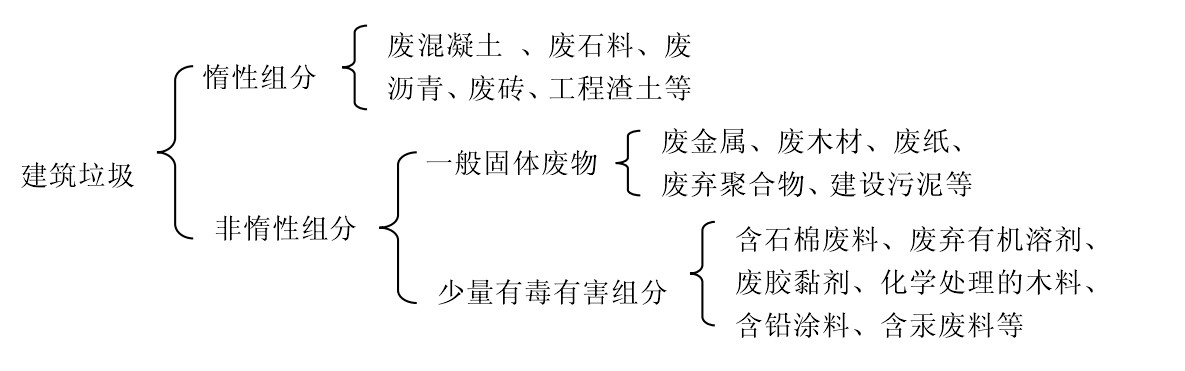據(jù)研究資料表明:超過80%的建筑垃圾為惰性組分,如果惰性建筑垃圾未被活性或非惰性垃圾污染,則其中一部分惰性建筑垃圾可直接用作回填材料或經(jīng)過一定程度的資源化技術(shù)處理之后進行再生利用。